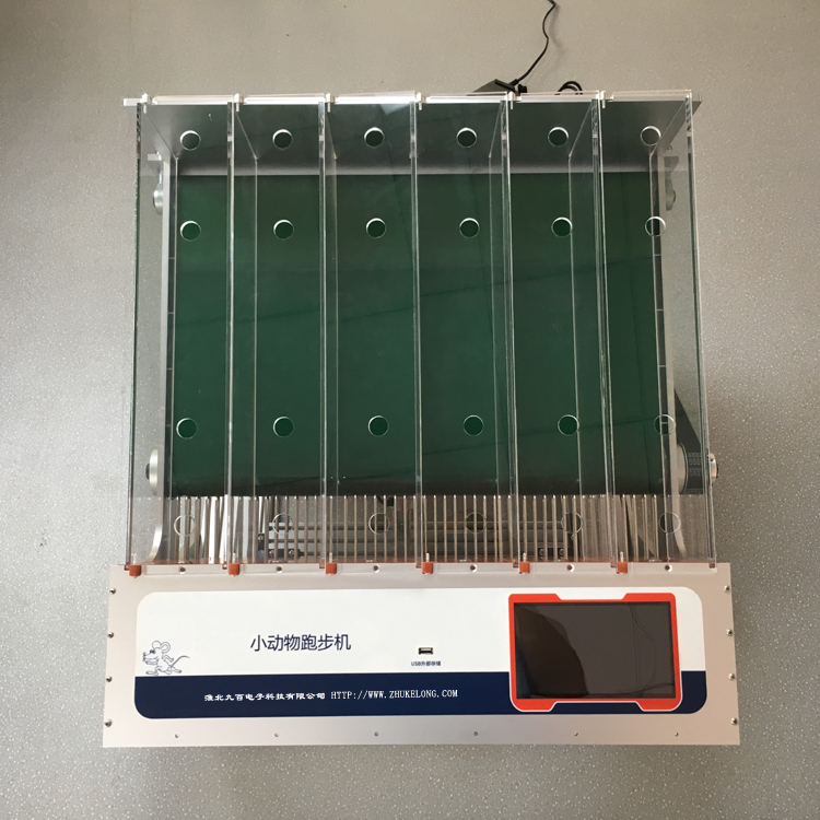 小動物跑步機(jī)的速度設(shè)定范圍在1-60m/min,精度1mm/min,有勻速模式、加速模式、定角度坡道模式可選。跑道可手動傾斜,0-45° 。儀器可自動檢測跑步速度、距離與相對距離。